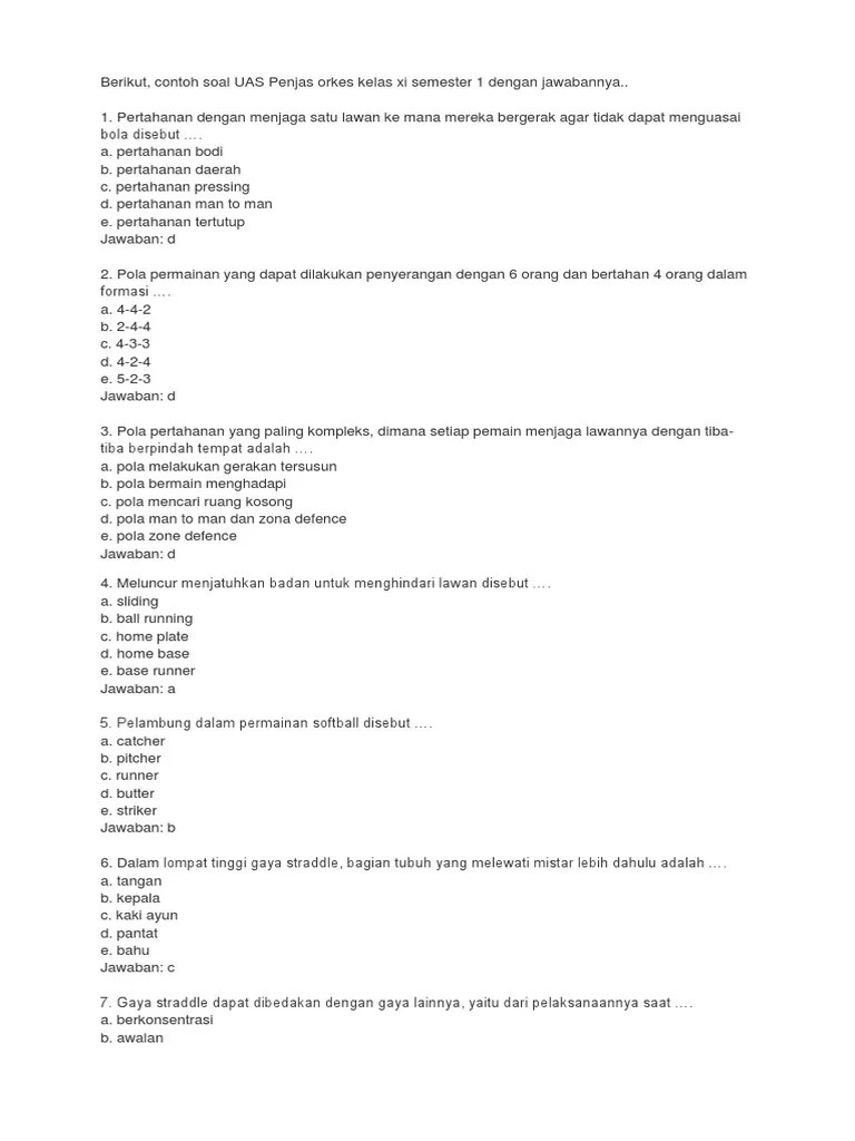 30 contoh soal uts/pts penjas kelas xi semester 2 kurikulum 2013 beserta jawaban. Permainan sepak bola berasal dari negara. Sekilas tentang permainan bola voli. Jasmani olah raga dan kesehatan postingan ini, berisikan soal penjaskes . Berikut soal pg penjas dan jawabannya, dimulai dari soal nomor 16 sampai dengan 30.
