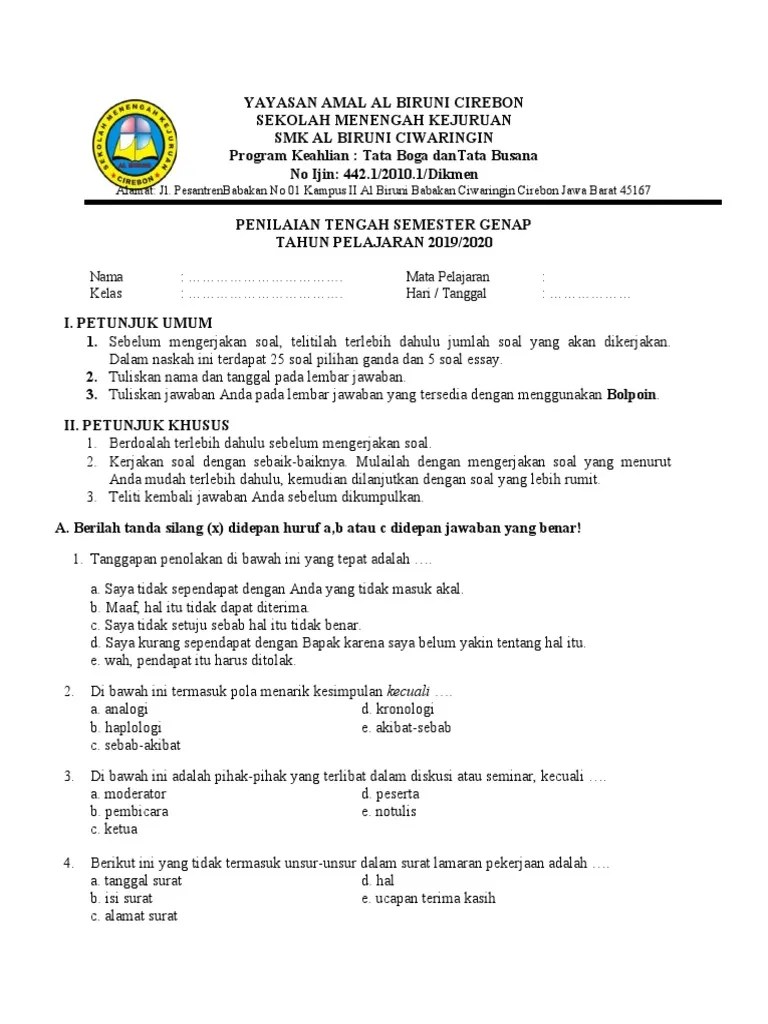 Contoh soal bahasa indonesia pilihan ganda kelas xii sma/ma/smk tahun 2019/2020. Simpulan dapat diperoleh dari keseluruhan isi bacaan. Buku guru bahasa indonesia tataran unggul kelas xii. Kesimpulan yang merupakan paragraf induktif ditunjukan dengan no . Kalimat utama pada paragraf tersebut ditandai dengan nomor… (1);